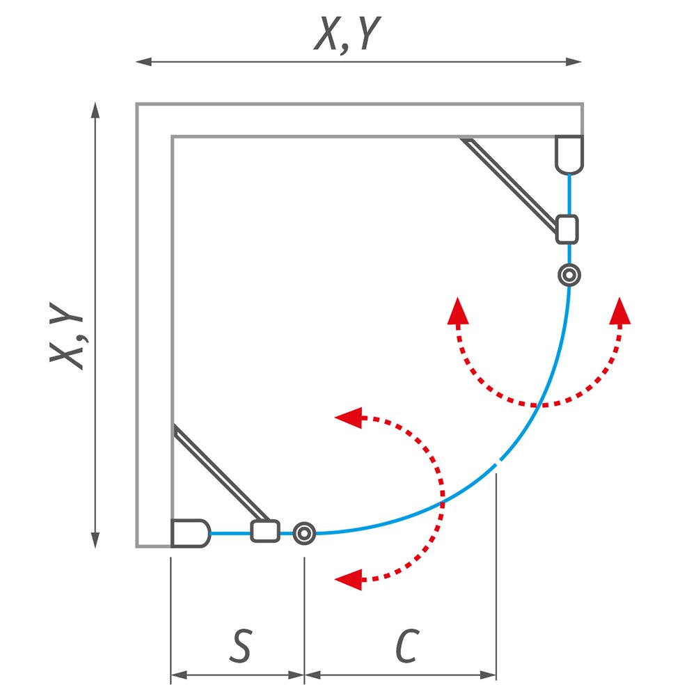 Čtvrtkruhový sprchový kout s dvoukřídlými otevíracími dveřmi